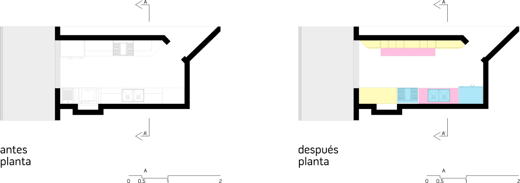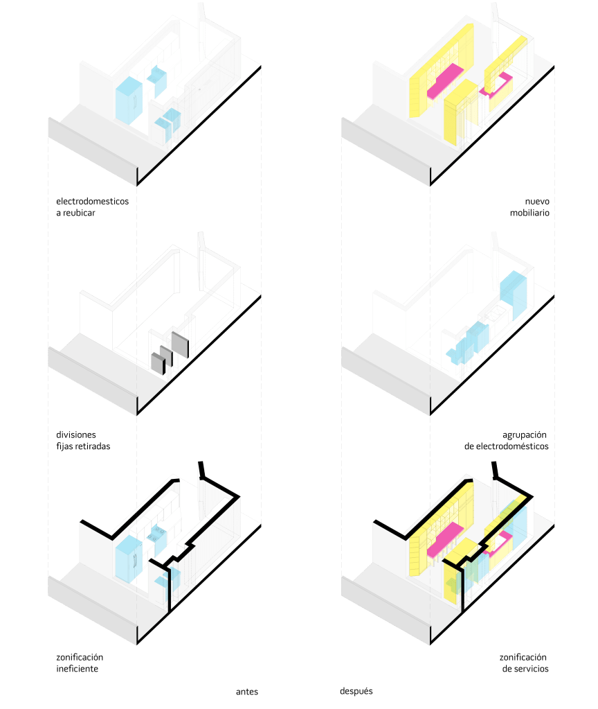 El encargo fue acondicionar la cocina de un departamento construido en la década de los ‘90, que con el paso del tiempo y después de algunas intervenciones puntuales dejó de suplir las necesidades de sus usuarios.