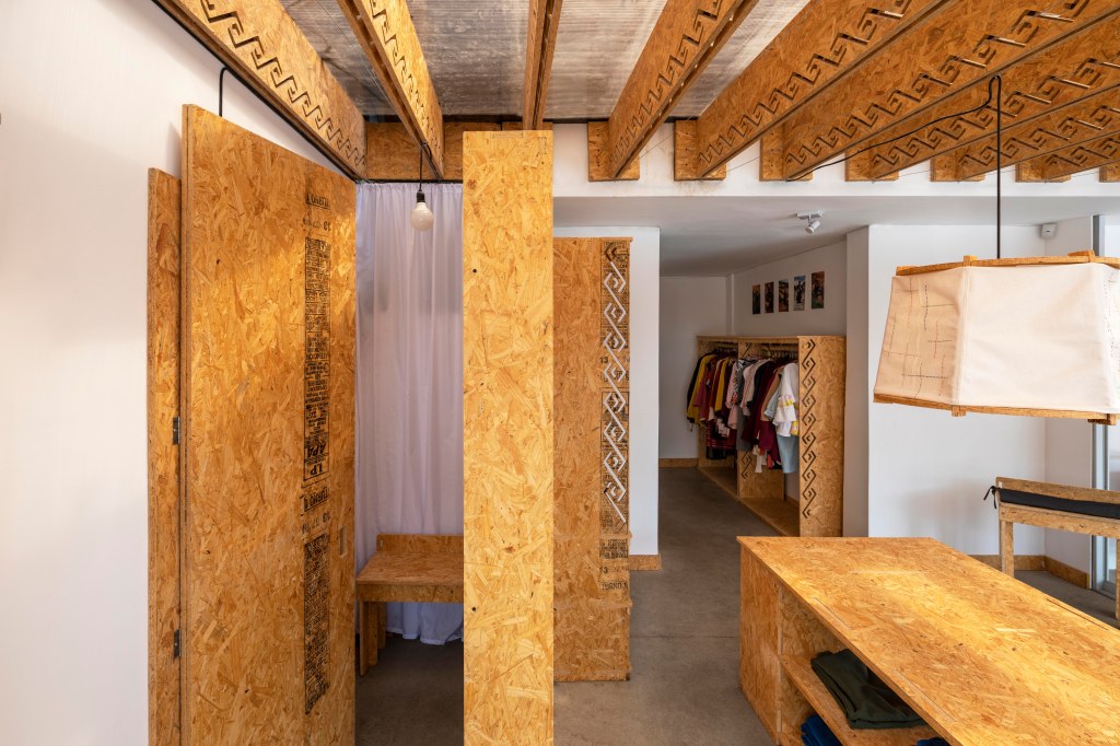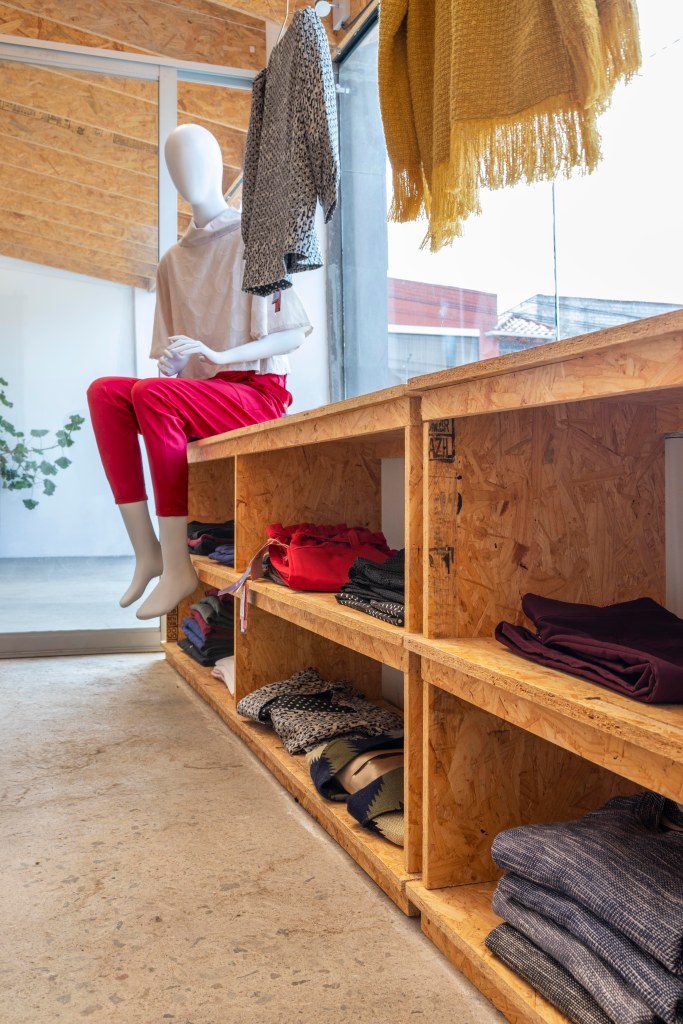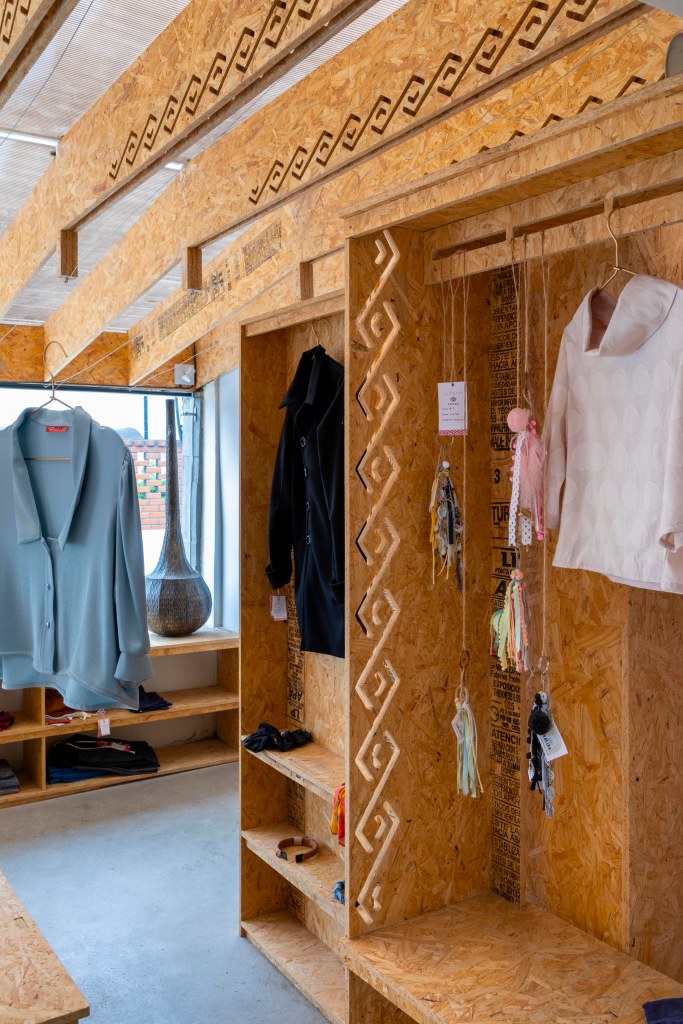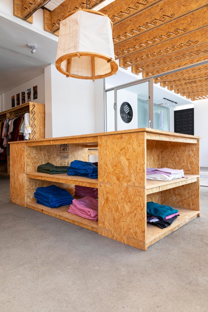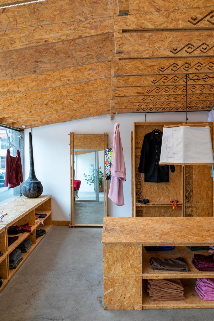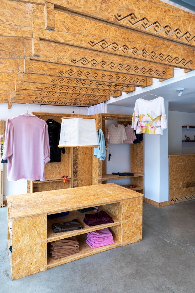 El uso del OSB y el corte computarizado nos permite pensar en la mutabilidad de la tienda en el tiempo, armar y desarmar, facilita poder generar otros mobiliarios que respondan a nuevos productos que Palla pueda desarrollar a futuro.