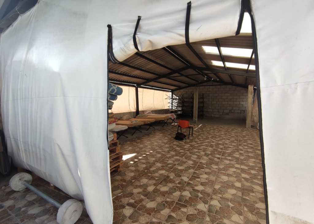 La experiencia de recibir a “los caminantes”, como se los llama en el cotidiano, ha establecido dinámicas específicas en el Albergue que requieren de ciertas adecuaciones espaciales para su correcto funcionamiento. Normalmente se separa a los caminantes por género, para evitar fricciones, conflictos y brindar seguridad. De este modo, se ubican en los tres espacios adecuados para dormir, uno abierto (sin ventanas) de mayor superficie destinado a los hombres, y otros dos cuartos pequeños cerrados para mujeres y niñxs. Como plantea la familia que administra el espacio, esa división se vuelve deficiente cuando llegan grupos LGBTIQ+, personas de la tercera edad o familias que no quieren separarse.