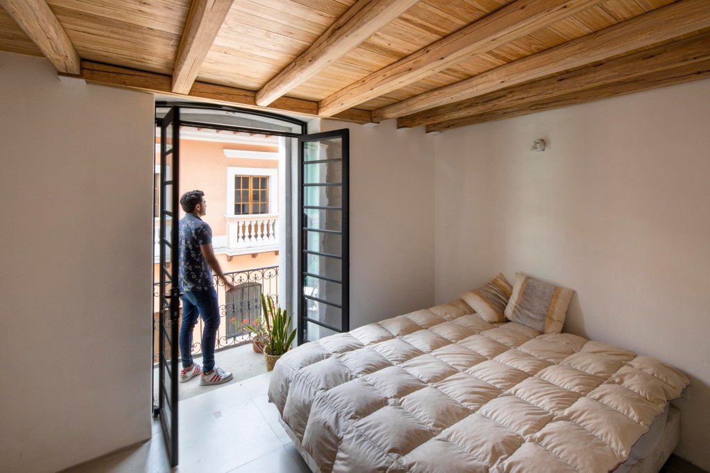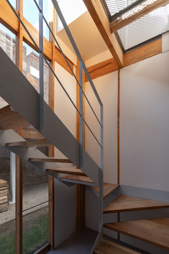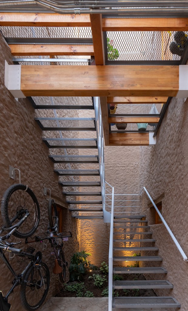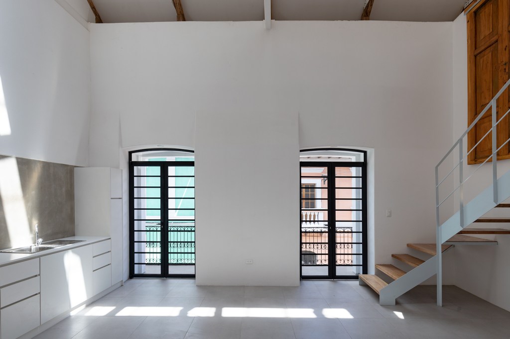 The housing units were solved with three different typologies: the first one responds to the dynamics of the neighborhood, a housing workshop that connects one of the commercial spaces with an exit to the street, and a suite in the interior. The second proposes apartments with one bedroom and a loft that allows various forms of occupation, using the original great height of the house’s second floor. The third one solves units for a large number of people, two-bedroom apartments on two floors, which can be extended with mezzanines above each room. The distribution of the larger apartments – located at the back of the house – is generated from an additional volume as a closed gallery, which contains the stairs and bathrooms, solving the private vertical circulations of each apartment.