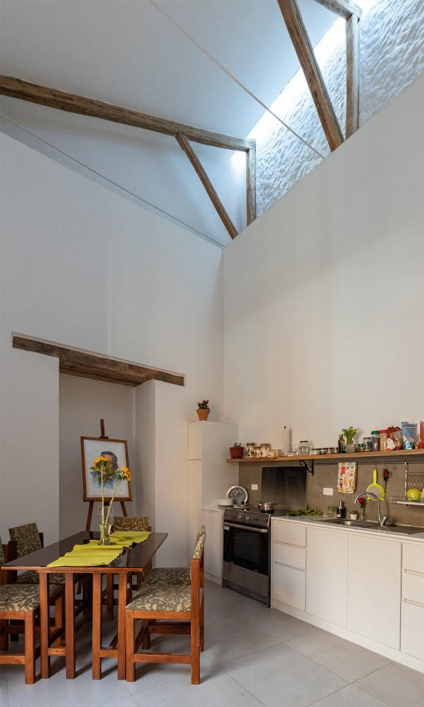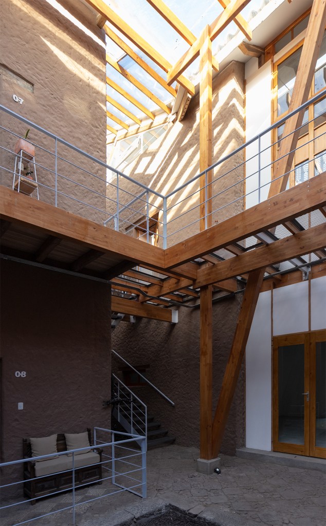 The architectural proposal consists of recovering and enhancing the value of the house’s original structure – bearing adobe walls – using structural reinforcement from their base to their head, as well as the original timber trusses. The complex is made up of eight apartments and two commercial spaces, with simple finishes that make it possible to reduce sales costs. This is how the project manages to generate a collective housing offer in the sector at affordable prices and also offers units that function as a blank canvas so that the owners can give greater identity to the interior of their homes.