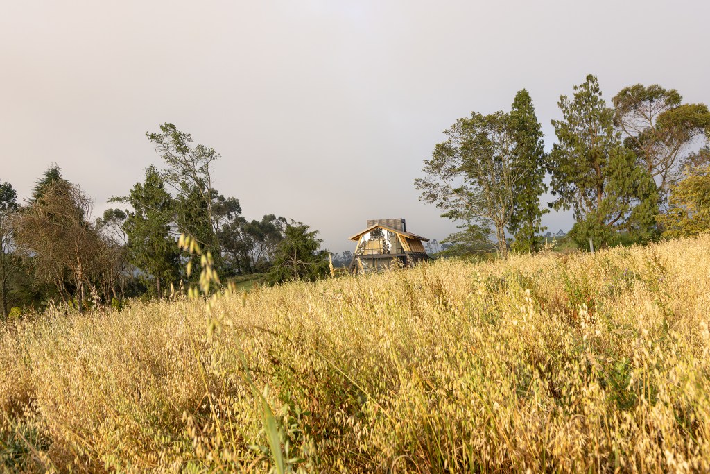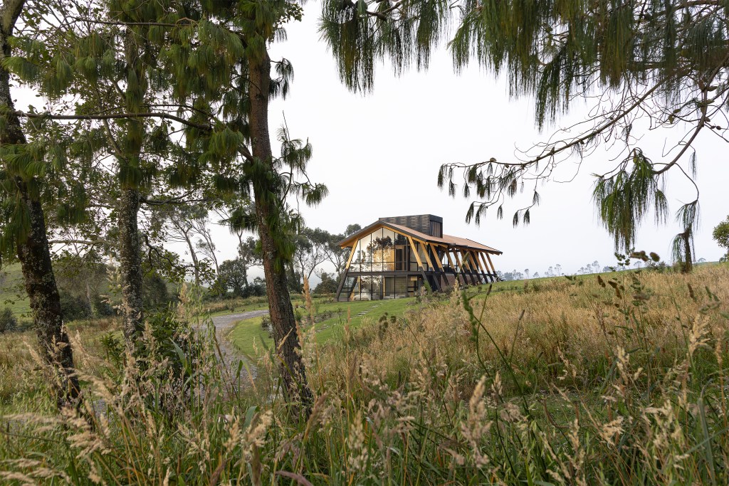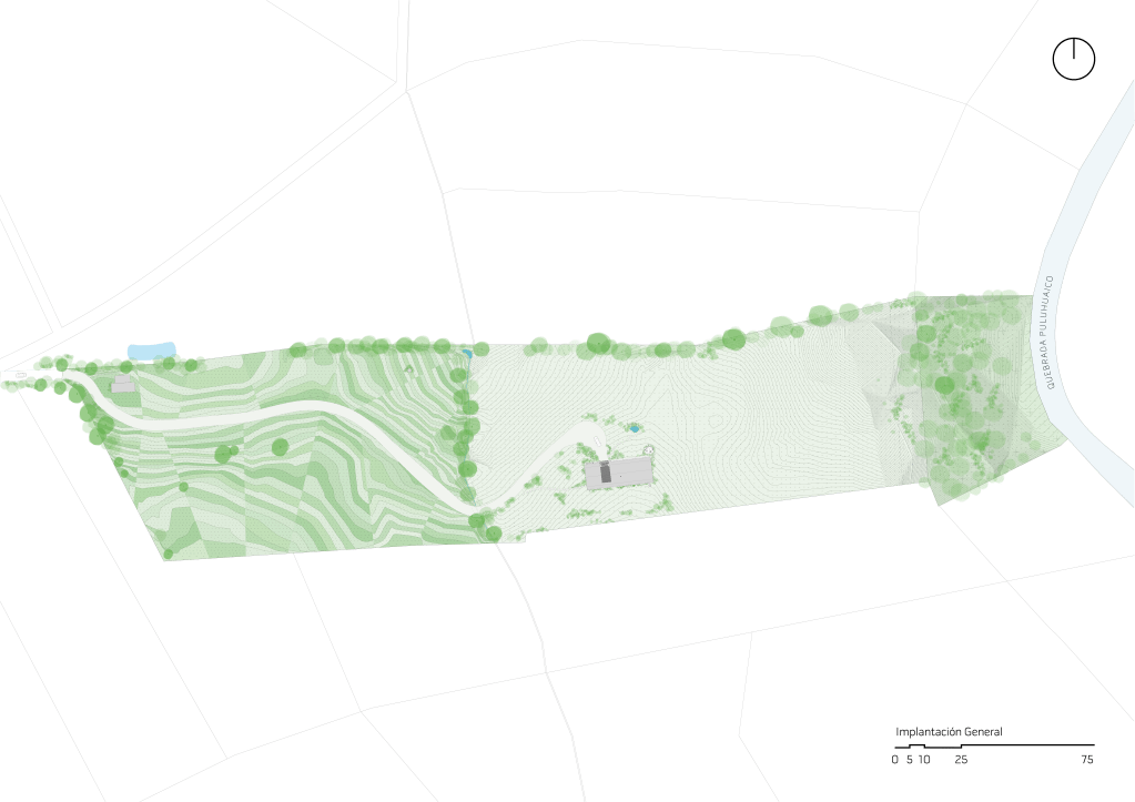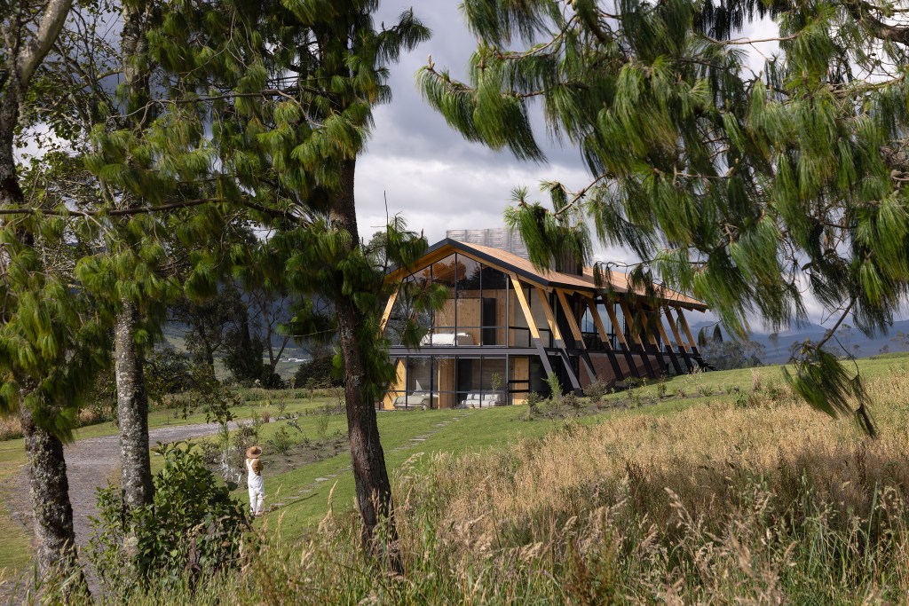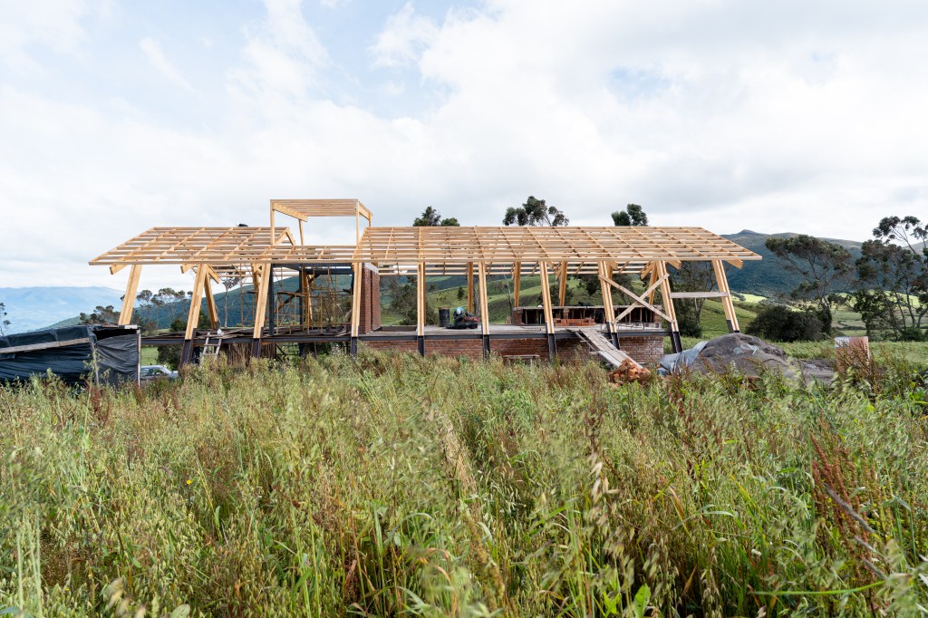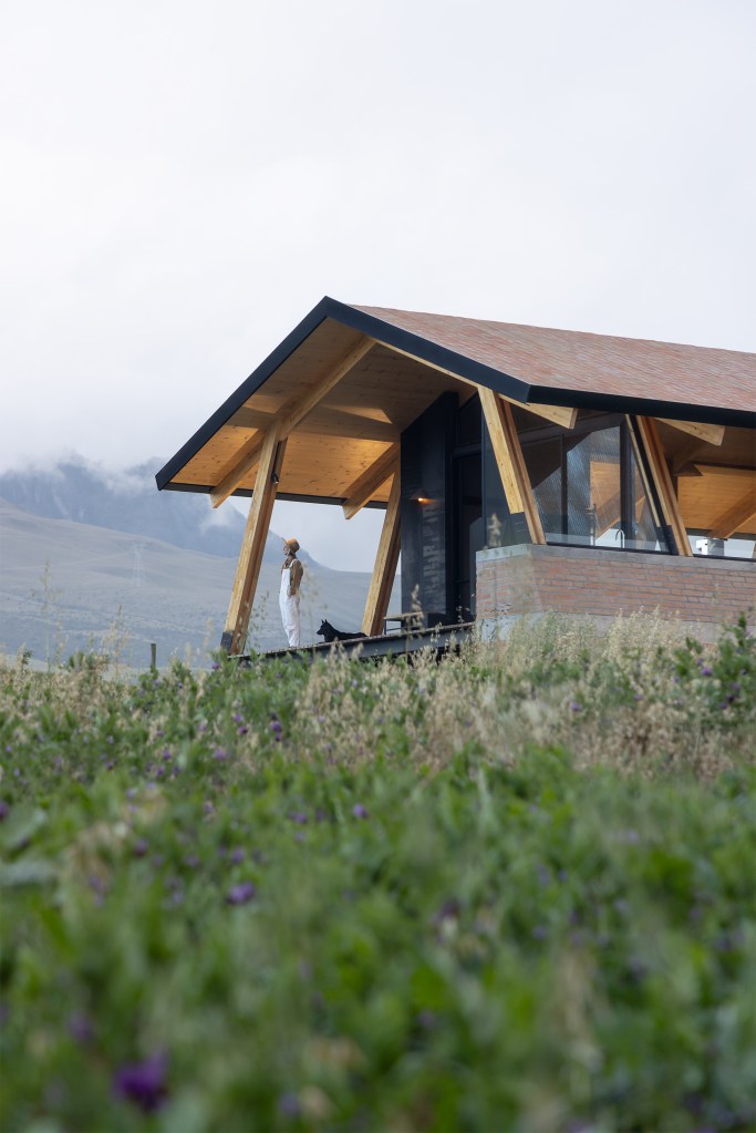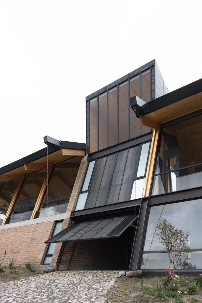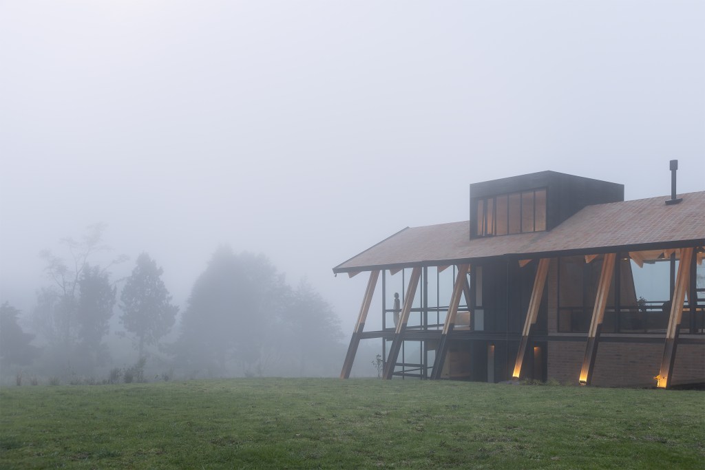 La Miradora is a house located in the central highlands of Ecuador within the páramo ecosystem, at an elevation of 3,403 meters. The elongated plot of land has access from a local road on one end and a large ravine on the other. Meadows and large volcanoes neighbor the house on either side. The house sits at the highest point of the lot, and takes advantage of a slight slope to open up to the views and organize its interior.