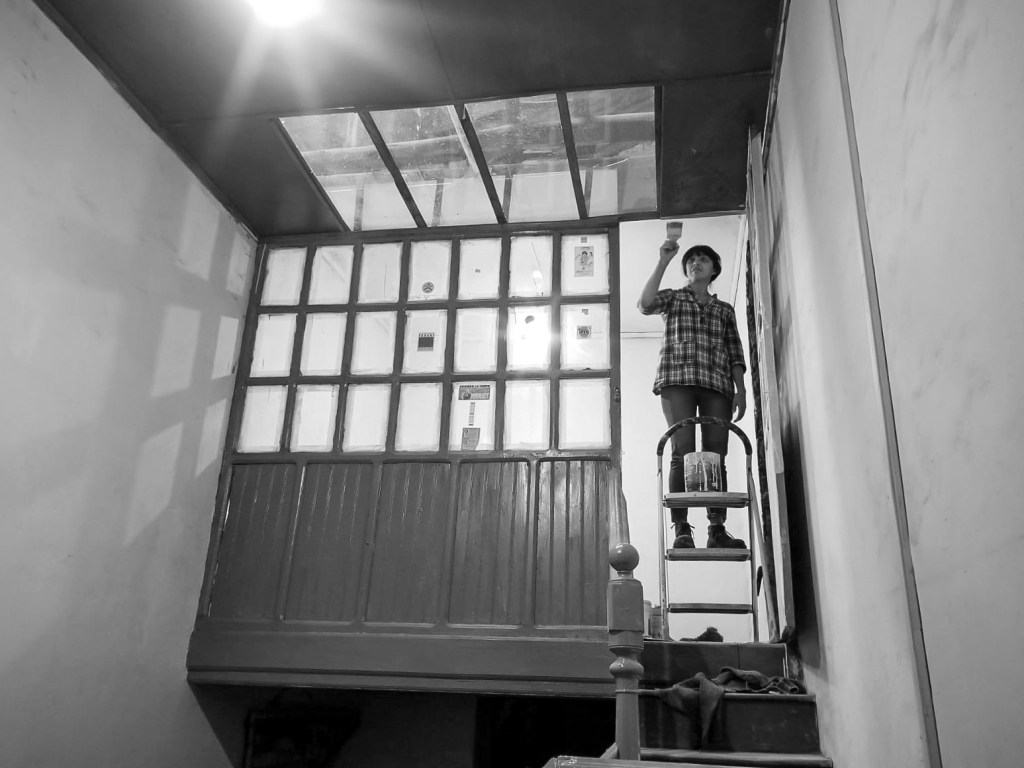 Todo comenzó siendo un experimento, en el año 2020 desde Taller General asumimos un proyecto de rehabilitación espacial en un departamento ubicado en el Centro Histórico de Quito. El lienzo eran cuatro paredes blancas, techos altos de tríplex, pisos de duela y dos ventanas a la calle del frente de la casa (que también albergaba dos departamentos y un local comercial en planta baja). En el espacio escogido no había baño, cocina y dormitorio. Tenía una mampara de madera que dividía el sitio en dos y una habitación lateral en un nivel más alto, sin conexión desde el interior (escenario alterno 02).